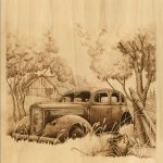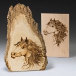 Using thick tips and deep burning, Dino Muradian creates unique pyrography art
